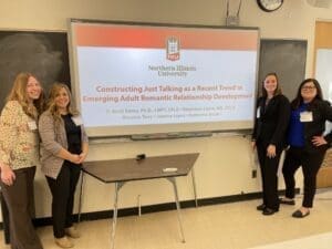 Over the years, our team has presented research at state, national, and professional conferences, including meetings of the Society for the Study of Emerging Adulthood, the International Association for Relationship Research, and the Illinois Council on Family Relations. These experiences have taken us to Washington, D.C., Boston, San Diego, and South Carolina, as well as to conferences hosted closer to home in Illinois. Each venue offered students a different window into the field and a chance to engage with scholars who care deeply about relationships, development, and family life.